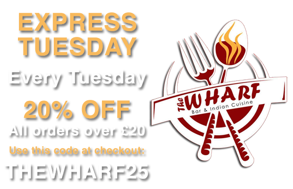 Our menu covers a whole range of curries and other indian dishes from mild to hot. We also offer some more unusual regional specialities, with particular emphasis on tandoori dishes, freshly cooked with the finest ingredients. The Wharf is fully licensed bar and restaurant offering a wide range of wines, beers and spirits.